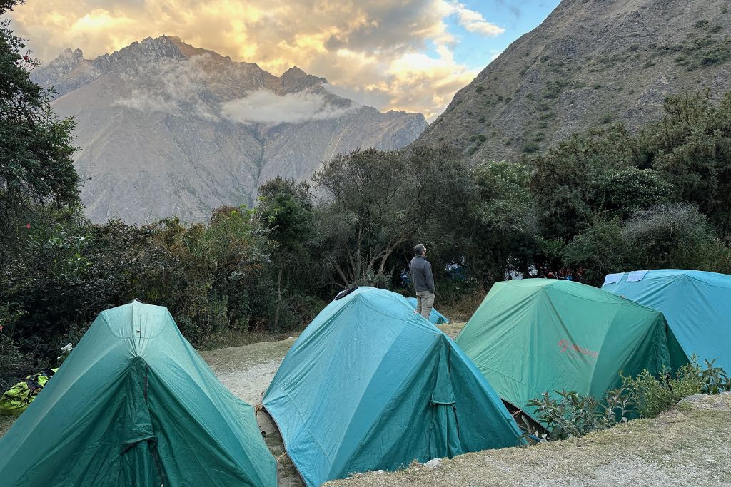 You get a 2-inch thick sleeping mat included in the price of the trail. It’s not very thick, so you can opt to rent an air mattress as well. Honestly, we did not and we slept great. If you have back problems I’d go for the air mattress (which the porters carry for you), but otherwise, it’s not needed. The sleeping bags plus the 2-inch mat was plenty for us – and anyone else who didn’t rent an air mattress.